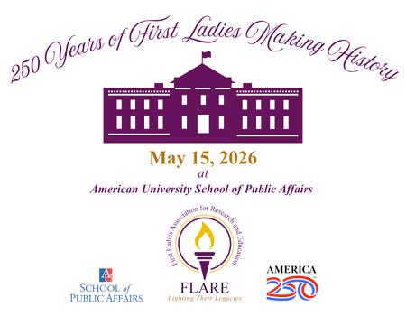 The event, sponsored by FLARE and American University’s School of Public Affairs First Ladies Initiative will bring together scholars, teachers, institutions, first ladies staff, biographers, archivists, journalists, historians, students and anyone with an interest in U.S. presidential first ladies for a day-long conference at American University in Washington, D.C.