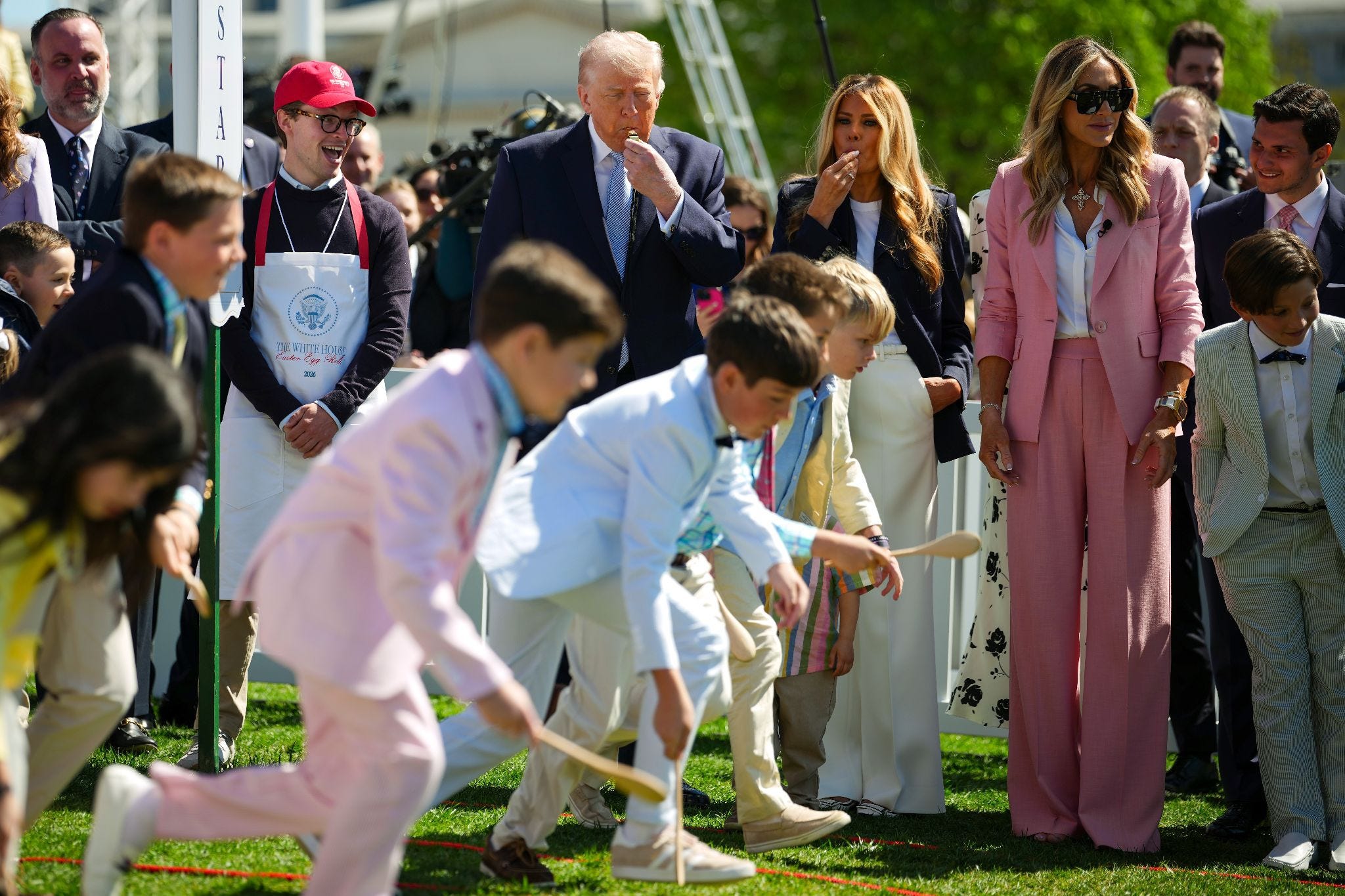 In brief remarks at the start of the event, Mrs. Trump said this year’s Easter Egg Roll is very special because it’s part of the 250th anniversary of the nation’s founding. The president noted it’s his fifth egg roll and that it gets better every time. He also thanked the egg farmers for the massive amount of eggs they supplied.
