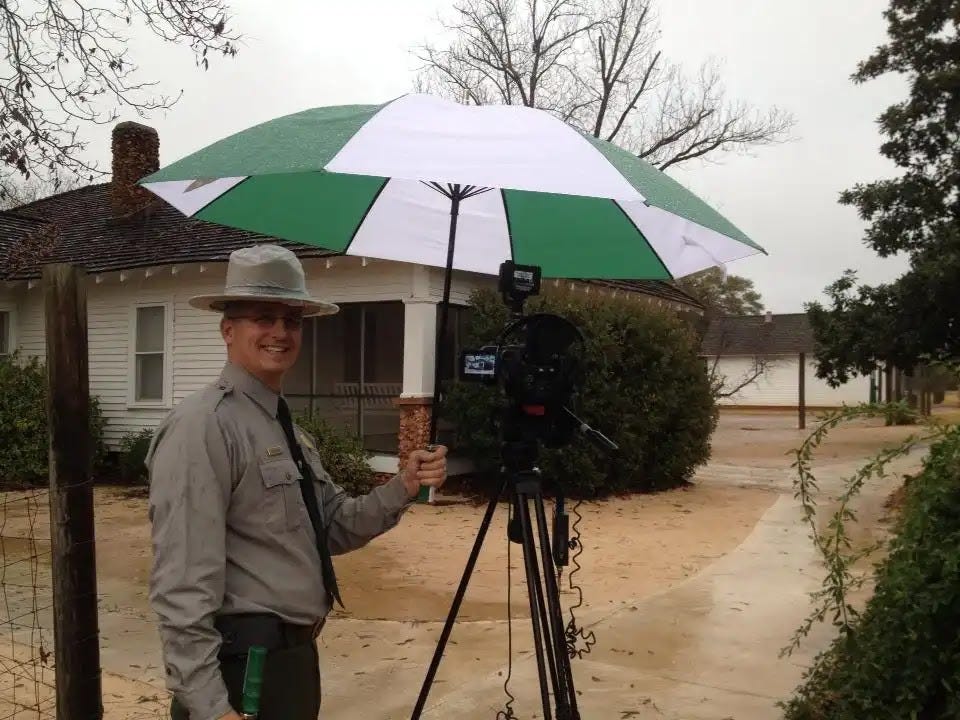 Andrew Och had just finished eating dinner at the Historic Inn and Antique Mall on Main Street where he was introduced to First Lady Rosalynn Carter’s niece Kim Carter Fuller, director of the Friends of Jimmy Carter in Plains. Och, finishing the day’s special–chili cheese dogs and peanut butter ice cream—shared how he spent his time alongside the lead park ranger capturing film footage of key biographical sites and artifacts that mark the life of Mrs. Carter, the former president’s wife of 77 years and the first lady of the United States from 1977 to 1981.